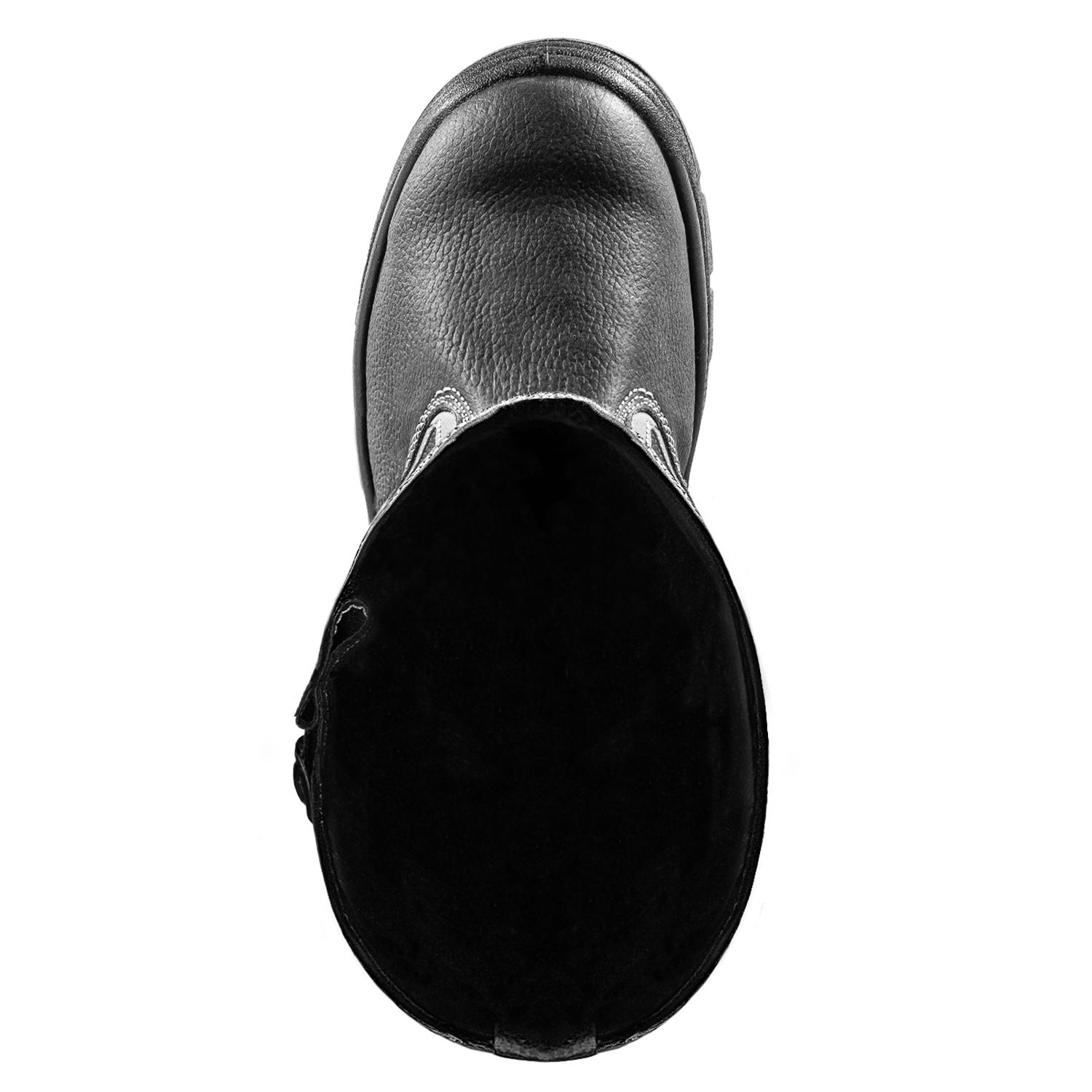 Зимние защитные сапоги на двухслойной ПУ (полиуретановой)/нитрильной подошве изготовлены из натуральной юфтевой кожи устойчивой к воздействию агрессивных внешних факторов. Сапоги утеплены шерстяным мехом, состоящим из натуральной и искусственной шерсти, что повышает устойчивость к низким температурам и истиранию. Носок защищен композитным подноском с ударной нагрузкой до 200 Дж. Подошва изготовлена литьевым методом, устойчива к воздействию кислотно-щелочных веществ (до 20%), масло-бензольных соединений и нефтепродуктов. Рабочая температура эксплуатации ботинок от -45°С до +300°С. Амортизатор в пяточной части сапога обеспечивает дополнительный комфорт для ног.