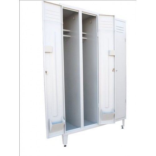 Шкаф металлический двухсекционный с четырьмя независимыми ячейками, закрываемых замками, поставляется в собранном виде, упакован в полиэтиленовую плёнку, перетянутую упаковочной лентой