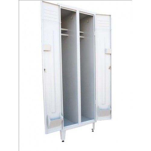 Шкаф металлический двухсекционный с четырьмя независимыми ячейками, закрываемых замками, поставляется в собранном виде, упакован в полиэтиленовую плёнку, перетянутую упаковочной лентой