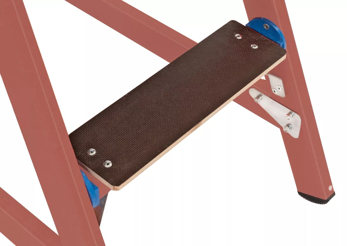 Высота до рабочей площадки диэлектрической стремянки АнтиТок ССД-0,7 ЕТ составляет 70 см. Рабочая площадка стремянок изготовлена из высококачественной ламинированной фанеры, покрытой противоскользящим материалом. Такую фанеру применяют для создания опалубки в монолитном строительстве, где крайне важно, чтобы в неё не проникала влага, толщина 90 мм исключает прогиб.