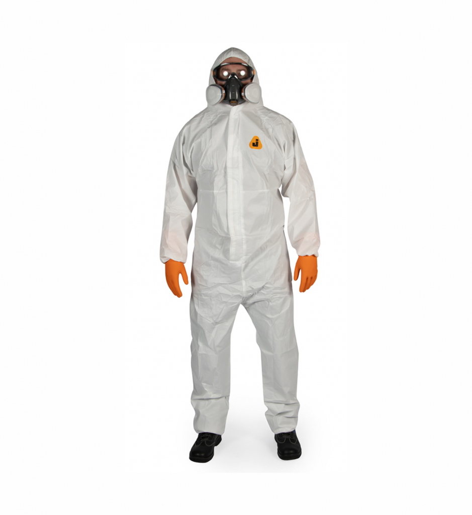 Защитный одноразовый комбинезон из нетканого "дышащего" материала (спанбонда) служит для защиты от пыли либо незначительных неспецифических загрязнений (например, появляющихся при выполнении малярных работ). Для защиты головы имеется притачной капюшон. Комбинезон снабжён застёжкой-молнией от горловины до шагового шва. Рукава и штанины заканчиваются резинками. Защита конечностей должна быть обеспечена дополнительно.