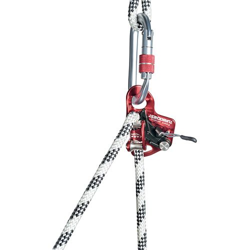 При критических нагрузках, возникающих в случае падения пользователя, устройство не сильно травмирует веревку.