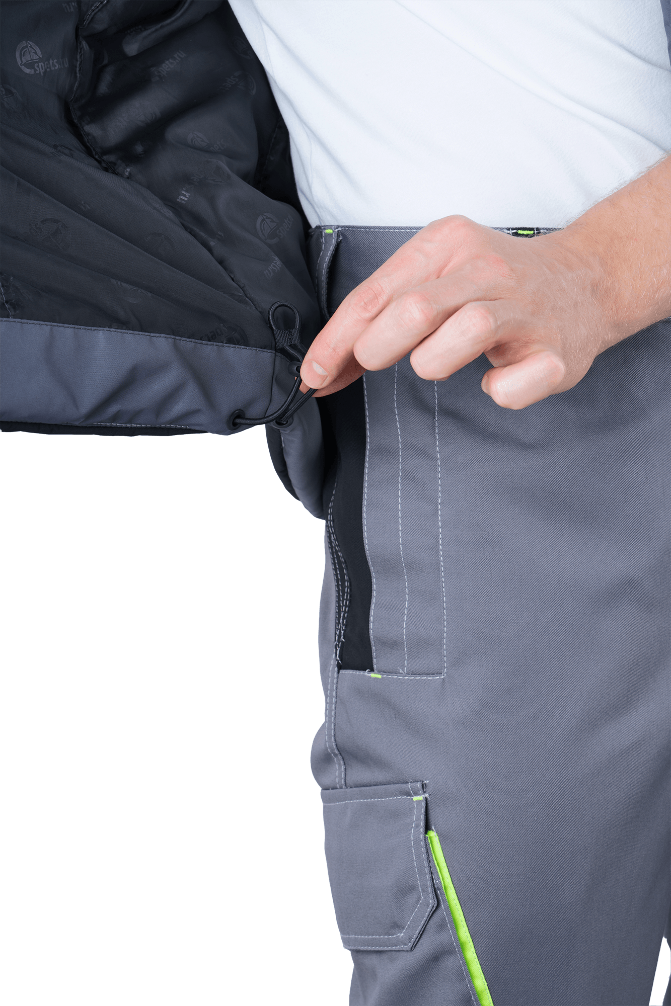•    низ изделия с регулировкой ширины при помощи эластичного шнура и фиксатора
