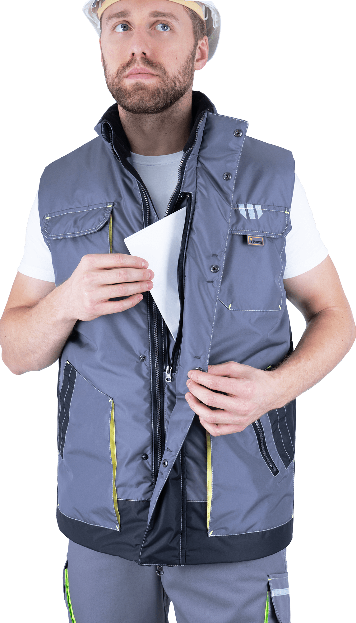 Жилет мужской утепленный "Эдванс" серый/т.серый/лимонный