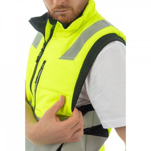 Жилет сигнальный утепленный Brodeks KW 111, желтый/черный (ЧЗ)
